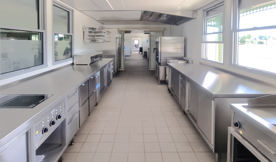 Eine restaurierte Dampflok BJ 1952 mit Waggons, eine jugendstilähnliche Orangerie mit Kronleuchtern und die denkmalgeschützte Rangierhalle rahmen den schattigen Biergarten ein. Jedes Element des Gastronomie-Konzeptes ist ein Highlight für sich und lässt den Betrachter staunen. Die restaurierte Dampflok mit ihren Waggons bildet das Herzstück im neuen Restaurant „Bahnhofmann“. Eine Infrastruktur für bis zu 500 Gäste wurde in die Waggons eingebaut und beherbergt eine hochmoderne Küche, eine Getränkeausgabe, eine Spülküche und ein Kühlhaus. Eine geeignete und leistungsfähige Ausstattung ist dafür Voraussetzung. Die Spültechnik ist von der Firma Meiko und die Geräte der Gartechnik von der Firma Rational. Platz finden die Gäste nicht nur im Biergarten, sondern auch im Bahnhofsrestaurant, welches im originalen Bahnhofs-Charme restauriert wurde. Das Ambiente wird durch das Geschirr „Purity“ (Firma BHS) und die Besteck-Kollektion „Metropole“ (Firma Amefa) veredelt. Die denkmalgeschützten Räume der Rangierhalle und der Orangerie kann man als Event-Location mieten, aber die Vision von Geschäftsführer Stefan Dombosch ist noch größer: Zukünftig sollen Geschäftskunden mit der eigenen Bahnhofmann-Bahn in Nürnberg oder Stuttgart abgeholt und im Zug, in der eigens eingerichteten Gastronomie, bewirtet werden. Sobald die Bahn in Eckartshausen angekommen ist, können dort die Gäste wie gewünscht feiern und abends werden sie von der Bahnhofmann-Bahn auf demselben Weg wieder nach Hause gebracht. Schon jetzt gibt es viele Anfragen zu der Event-Location und die ersten Hochzeiten sind bereits in Planung.